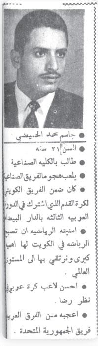 < لم يشترك اللاعب محمد الخطيب في مباريات الجمعة الموافق 1961/11/10 وذلك بسبب ألم في قدمه.