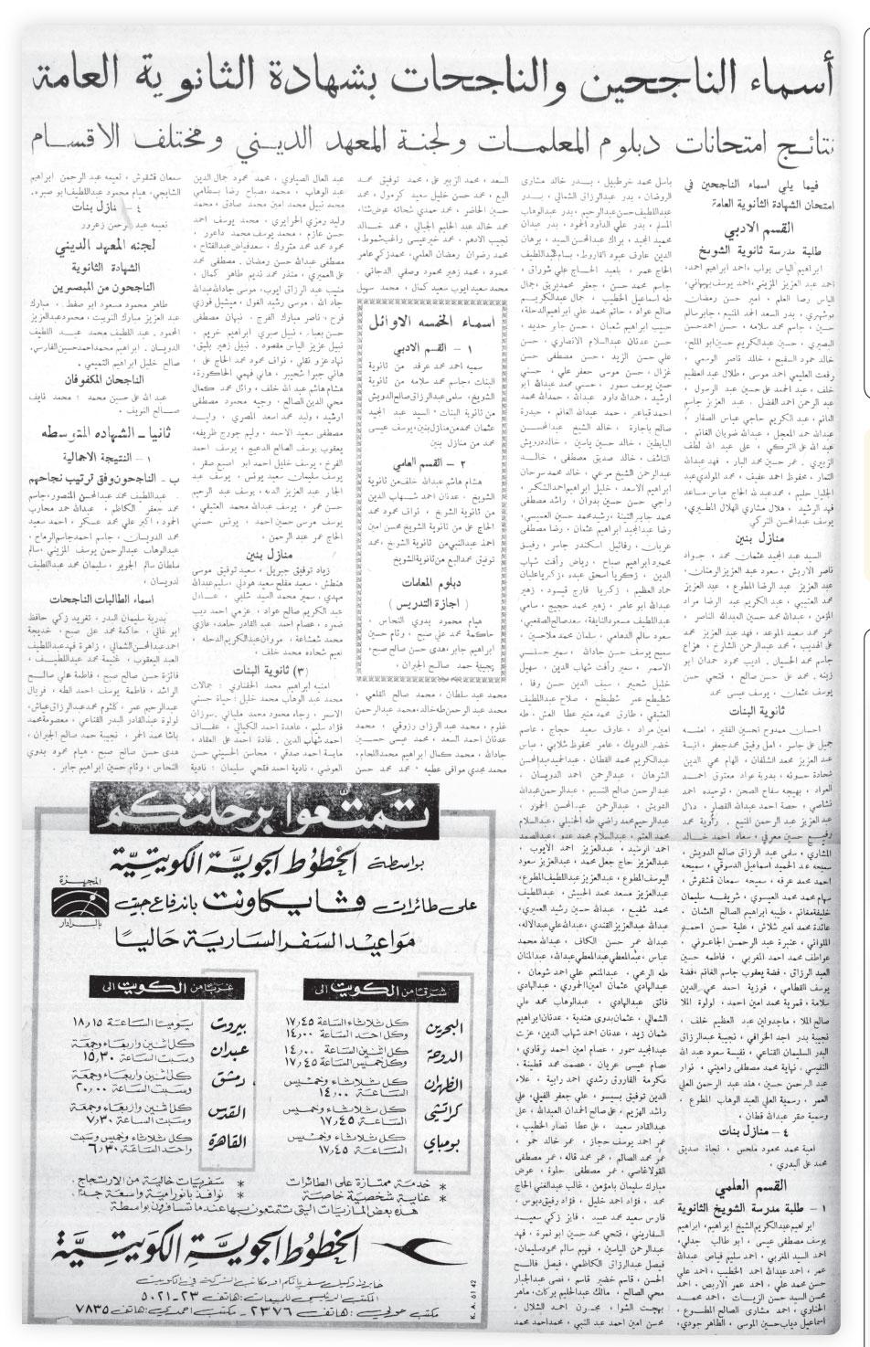أمر سعادة الشيخ صباح السالم الصباح رئيس الخارجية بتعيين الانسة شيخة احمد العنجري في قسم الصحافة والانسة نورة مبارك الفلاح في القسم الثقافي ومن المعروف ان هاتين الانستين هما اول فتاتين كويتيين تعملان في سلك الخارجية وهما من خريجات كلية الآداب قسم الاجتماع في جامعة القاهرة وكذلك تم تعيين الانسة فاطمة ثنيان الغانم والانسة بدرية البرجس في قسم الارشيف.
