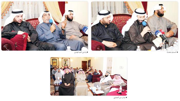 وقال المسلم في الحوار المفتوح الذي اقيم في ديوانية حمد العون في منطقة الزهراء مساء اول من امس ان «الكويت بفضل رجالها تخلصت من حكومة فساد ومجلس قبيضة فاسد واليوم نطمح الى تحقيق مرحلة جديدة من الاصلاح الحقيقي ويبدأ هذا الاصلاح بحسن اختيار الناخبين لمرشحين على قدر من المسؤولية تجاه وطنهم لاسيما ان اختيارنا اليوم هو من اجل الكويت ومن اجل شعب ومن اجل مصلحة الجميع»، مبيناً ان «تحقيق الاصلاح يحتاج الى اغلبية برلمانية تسعى لتحقيق ما يطمح له المواطن الكويتي وان لم تتحقق هذه الاغلبية سنعود الى نفس المعاناة لان القضية ليست بذهاب سمو الشيخ ناصر المحمد ويأتي سمو الشيخ جابر المبارك وليس بان يذهب رئيس مجلس الامة جاسم الخرافي ويأتي مكانه شخص آخر بل القضية الرئيسية تكمن في تغير نهج دولة».