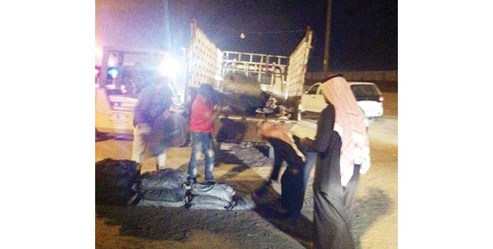 وتطبيقا لتعليمات اللواء ابراهيم الطراح مدير امن الجهراء ترأس الرائد مطر السبيل والملازم اول مبارك الحجرف القوة الامنية التي نسقت مع فريق من طوارئ بلدية الجهراء بقيادة رئيس فريق الطوارئ علي القويضي ومشرف المركز انور الصالح، واحيل المضبوطون الى جهات الاختصاص.