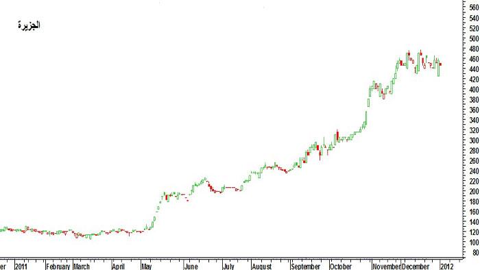 وبحسب النتائج المعلنة للتسعة أشهر نجد ان خروج الخطوط الوطنية من السوق والمنافسة قد كان ايجابيا على «الجزيرة» فقد حققت نتائج مفاجئة غير متوقعة متمثله بأرباح بلغت 9.2 ملايين دينار والربع الثالث لوحده كان 6 ملايين دينار وبالمقارنة لنفس الفترة لعام 2010 نجد أنها كانت قد حققت خسائر قدرها 4.8 ملايين دينار، أما النتائج السنوية لها فمازالت محل ترقب وان كانت التوقعات بأن أي توزيعات سنوية للشركة لن تحمل طابعا نقديا لحاجتها اليه بقدر ما ستكون منحة لزيادة راسمالها الصغير البالغ 22 مليون دينار ولزيادة اسطولها من الطائرات والتوسع فيه.الجدير بالذكر ان %50.5 من اسهم الشركة ملكا لكبار مساهميها.