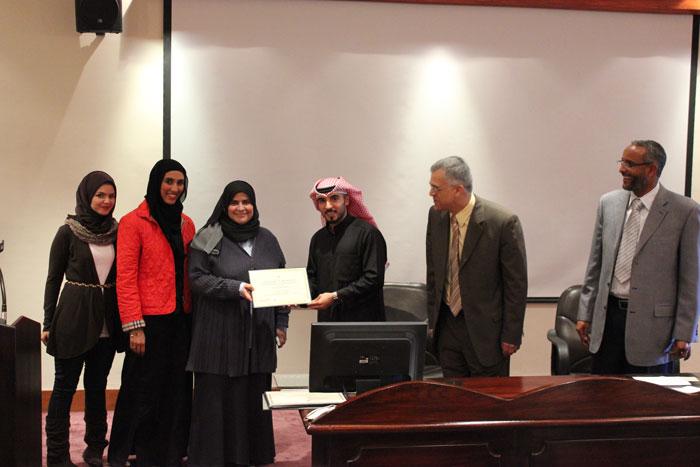 حيث فاز مشروع تحليل المكونات الغذائية في الطماطم الطازجة ومعجون الطماطم والمقدم من الطالبات علياء المطوع، أمينة العوضي، وبزة الراشد باشراف الدكتور أحمد اللافي من قسم العلوم الأسرية. ومشروع نبهني للحد من استهلاك المياه والمقدم من الطالبات دلال الحليلة، حوراء الخميس، ووضحة الغانم بإشراف الدكتور جهاد الدلال من قسم علوم المعلومات، ومشروع تطور سرد احداث القصة عند الاطفال المصابين بفرط النشاط ونقص الانتباه والأطفال الطبيعيين، من تقديم الطالبة سارة المزيد والطالبة جنان التميمي وباشراف الدكتورة خولة القناعي رئيس قسم اضطرابات التواصل واللغات بكلية البنات الجامعية.