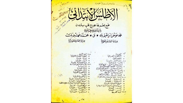 غلاف الاطلس الابتدائي وعليه أسماء من تعاقبوا على امتلاكه