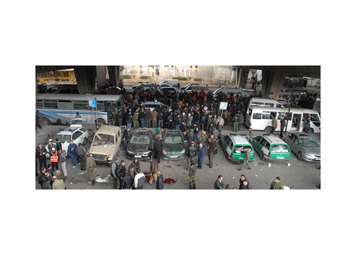 صورة وزعتها وكالة «سانا» لموقع التفجير في دمشق (ا ف ب)