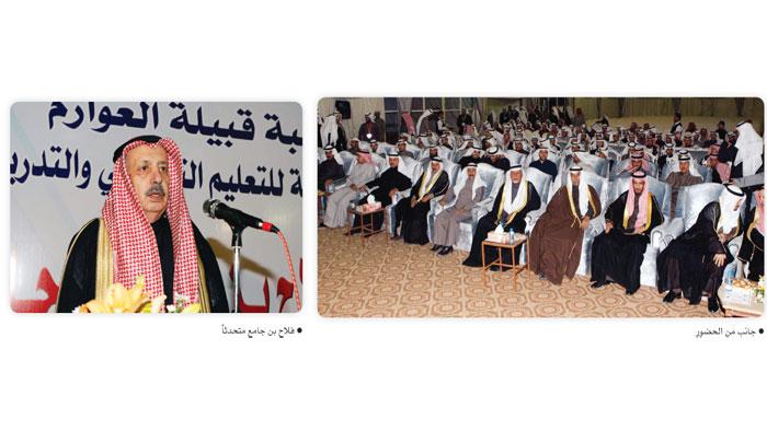 وأثنى الرميض على اسهامات أمير قبيلة العوازم فلاح بن جامع ورعايته الكريمة لهذا الملتقى الثقافي، مثمنا دور بن جامع في تنظيم الملتقيات العلمية التي بدورها ساهمت في مساعدة أبناء القبيلة على المنافسة الشريفة في العلم والتعليم بلا حدود لما فيها خير للقبيلة والكويت، مؤكدا ضرورة العمل لأجل هذا الوطن العظيم بالعلم والعمل.