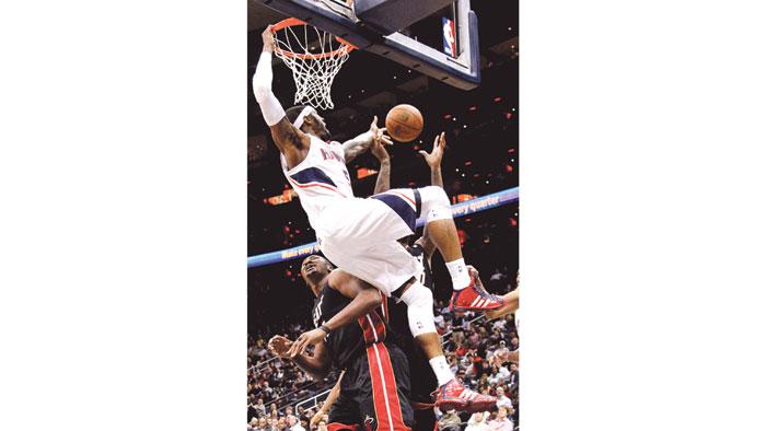 احتاج ميامي هيت الذي غاب عنه نجماه لوبرون جيمس ودواين وايد الى ثلاثة اشواط اضافية لتخطي عقبة اتلانتا هوكس بالفوز عليه 109/116 بفضل 33 نقطة لكريس بوش و29 لماريو تشالمرز في الدوري الأمريكي لكرة السلة.