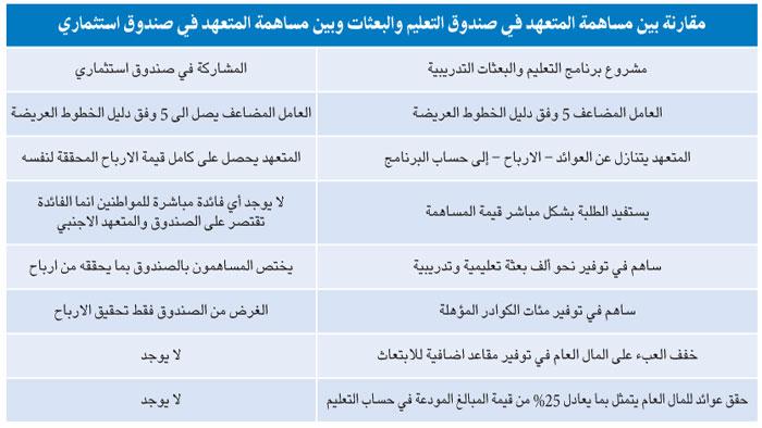 وآلية تنفيذ مشروع برنامج التعليم والبعثات لا تفرض على المال العام أية اعباء اضافية، كما آلية حساب قيمة المساهمة لا تفوت على المال العام أي مبالغ.