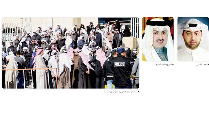 واضاف الشيخ مبارك الصباح ان نقابة القانونيين ترفض التصرفات والقرارات العشوائية لديوان الخدمة المدنية وان مجلس ادارة النقابة اوضح لرئيس الديوان في الاجتماع الذي تم معه ان عليه ان يصحح الخطأ ويتحمل مسؤولياته بتعديل مسميات القانونيين لأن هذا العمل هو اختصاص أصيل لديوان الخدمة المدنية من خلال ادارة ترتيب الوظائف، «واستغربنا اصراره على ألا يتم تعديل المسميات الا عن طريق مجلس الخدمة المدنية، وزج بملفنا مع ملف الزيادات والكوادر حتى يجعل الأمر من اختصاص مجلس الخدمة المدنية».