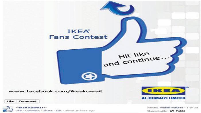 اعلنت ايكيا الكويت عن اطلاق «مسابقة المعجب الأكبر بايكيا الكويت»، على الفيسبوك وذلك لتوفير فرصة لكافة عملائها الفوز بمجموعة واسعة من الهدايا المبتكرة.هذا وتستمر هذه المسابقة حتى 2 فبراير 2012.