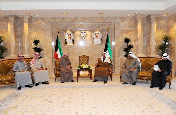 استقبل سمو الشيخ جابر المبارك الحمد الصباح رئيس مجلس الوزراء في قصر السيف ممثلا للاتحاد الوطني لطلبة الكويت فرع الولايات المتحدة الامريكية.