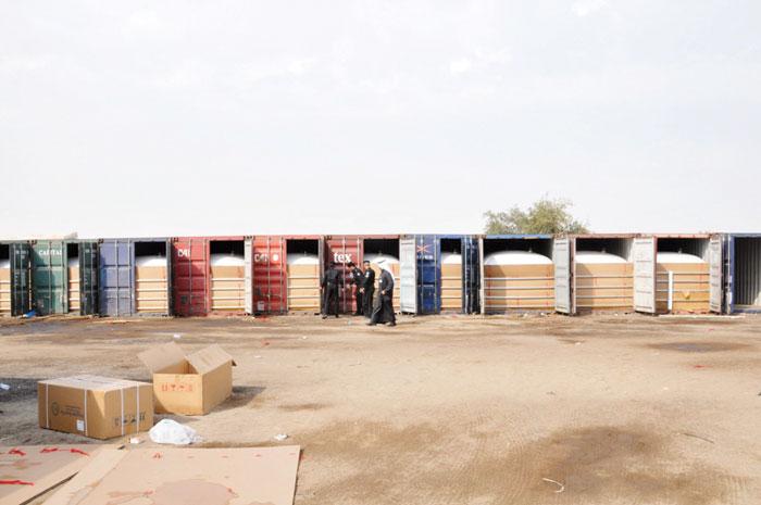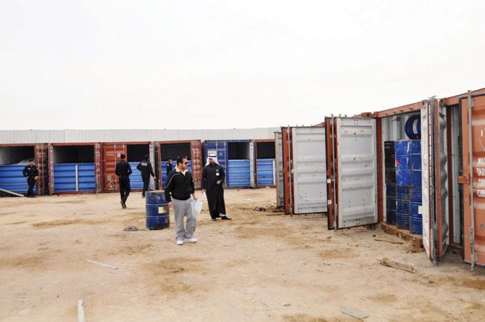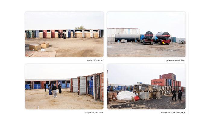 عدد كبير من الكونترات والصهاريج موزعة على عدة مخازن ومستودعات بميناء عبدالله و7 مواقع مختلفة
