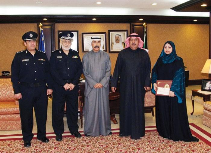 كرم وكيل وزارة الداخلية الفريق غازي عبدالرحمن العمر بحضور وكيل وزارة الداخلية المساعد لشؤون الجنسية والجوازات بالانابة اللواء عبدالله الراشد، ومساعد مدير عام الادارة العامة للهجرة العميد عدنان الكندري، رئيسة قسم خدمة المواطن بهجرة مبارك الكبير - أمل عباس قنبر، لجهودها المتميزة وتفانيها في أداء عملها، ومثمنا الدور الذي تقوم به لخدمة المواطنين والمقيمين بالادارة، وطالبها ببذل المزيد من الجهد والعطاء من أجل خدمة الوطن الغالي.