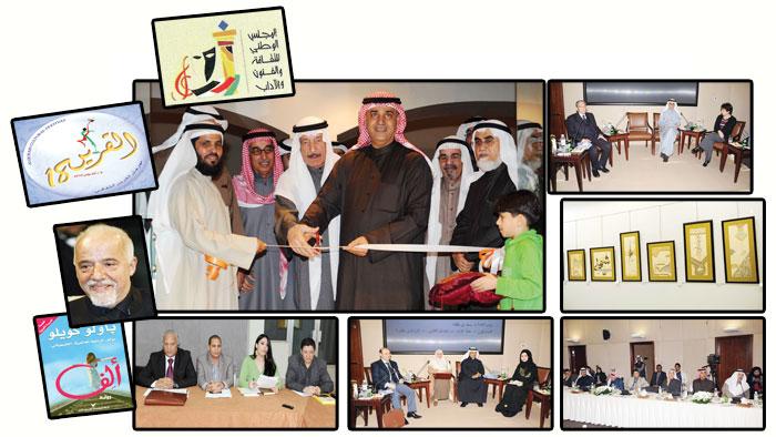 في معرضه الذي يقام في قاعة أحمد مشاري العدواني ضمن فعاليات مهرجان القرين الثقافي الثالث عشر...تناثرت الحروف في تكوينات كظلال القديم وكجلال العاشق في ملكوت تنطوي فيه المعاني التي نسجتها الحروف من أبيات الشعر التي تجلت معانيها في حوارية تشكيلية بين الشكل والأرضية، راح الفنان وليد الفرهود يترك للرؤية الفنية تواصلها ما بين المعنى وحركة شكل الخط العربي.