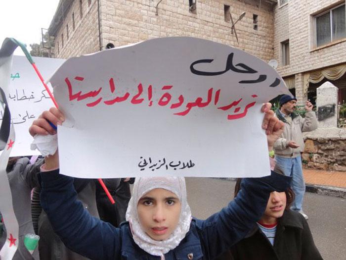 < تلميذات يتظاهرن ضد الرئيس السوري في الزبداني (رويترز)