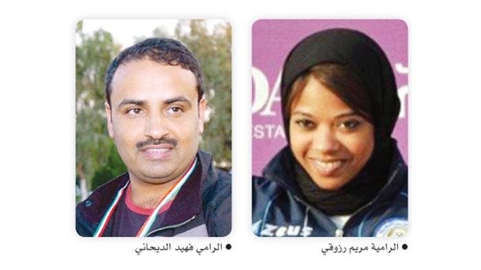 حجز الرامي فهيد الديحاني والرامية مريم الرزوقي مقعدين لهما في اولمبياد لندن 2012 وذلك بعد حصولهما على باطقتي التأهل في البطولة الآسيوية الـ 12 للرماية والمقامة حالياً في العاصمة القطرية الدوحة.