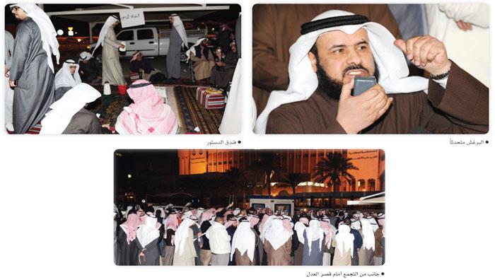 توافد عشرات المواطنين الى ساحة قصر العدل بالاضافة الى نواب سابقين ومرشحين حاليين للتعبير عن عدم رضاهم على الحكم القاضي بشطب ترشح النائب السابق د. فيصل المسلم لانتخابات مجلس الامة 2012م وافترش الحضور الذين كان جزء منهم من النساء الارض لتنطلق فعاليات الاعتصام بكلمة مرشح الدائرة الخامسة د. خالد شخير المطيري الذي اوضح ان هذا الحضور الشبابي يعطي املا كبيرا باهتمام الشباب بالدستور ورفضهم لكافة صور الفساد المستشري، وبين ان الحكومة لديها ألاعيب منها ما يخص قانون الجنسية حيث استحدثت عام 1981م ما يسمى بـ«المادة الخامسة» كورقة سياسية وعصا تزن بها مصالحها وتساوم عليها.