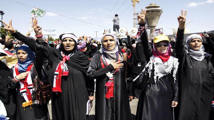 يمنيات يطالبن الرئيس اليمني بالرحيل (أ.ب)