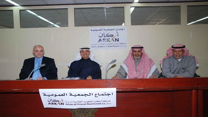وكانت عمومية أركان الكويت العقارية قد أقرت جميع بنود جدول الأعمال بها فيها اقتراح مجلس الادارة بتوزيع أرباح نقدية بواقع %5 من رأس المال، وتجديد تفويض مجلس الادارة بشراء %10 من أسهم الشركة، كما وافقت الجمعية على استقالة الشركة الأولى للاستثمار من مقعدين بعضوية مجلس الادارة وتزكية كل من فواز عثمان العيار ومشعل يوسف الزايد كعضوين مكملين بدلاً عن عضوية الأولى للاستثمار.