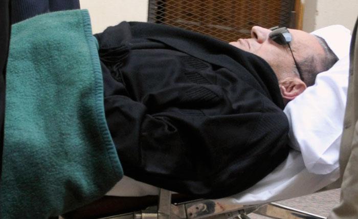بينما أقلت طائرة هليكوبتر مبارك من المركز الطبي العالمي بطريق القاهرة-الاسماعيلية الصحراوي حيث يقضي عقوبة الحبس الاحتياطي الى المحكمة بمقر أكاديمية الشرطة ليتم نقله بواسطة سيارة اسعاف الى مقر المحكمة تمهيدا لنقله للقفص الحديدي داخل قاعة المحاكمة.