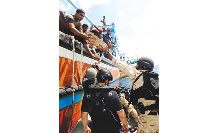 وكان لايزال احد البحارة على متن السفينة الإيرانية في حين لجأ البحارة الآخرون الى السفينتين اللتين قدمتا المساعدة لها.