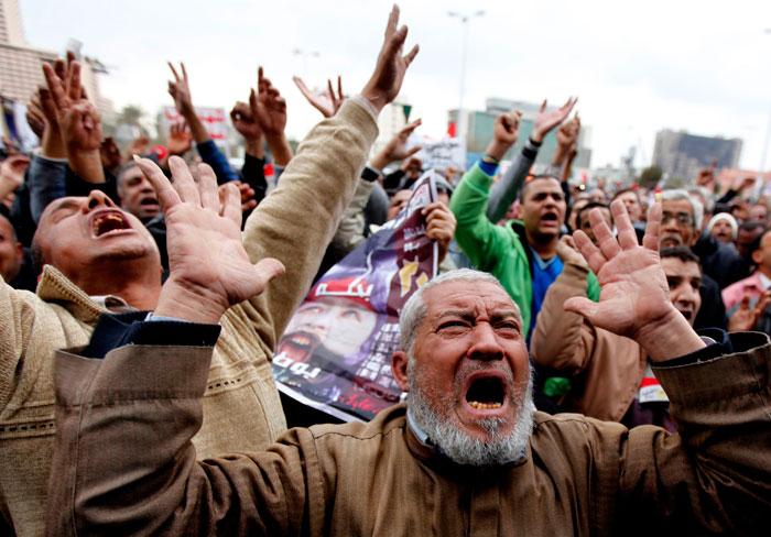 متظاهرون غاضبون في ميدان التحرير أمس (رويترز)