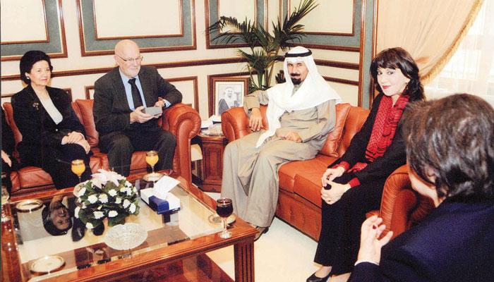 الشيخ علي الجابر أثناء استقباله الوفد الفرنسي بحضور السفيرة ندى يافي