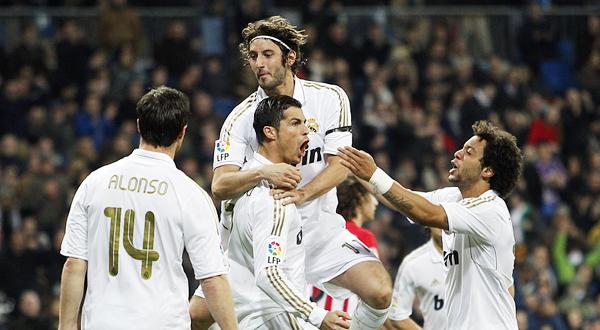 (د ب أ)- سجل المهاجم البرتغالي كريستيانو رونالدو هدفين من ضربتي جزاء ليقود ريال مدريد إلى فوز ثمين 4/1 على ضيفه أتلتيك بلباو مساء أمس الأحد في ختام مباريات المرحلة الأولى من مسابقة الدوري الأسباني لكرة القدم والتي تأجلت لنهاية فعاليات الدور الأول بسبب إضراب اللاعبين في بداية الموسم.