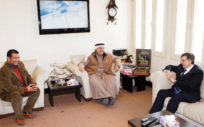 الزميل وليد الجاسم مستقبلاً السفير الكندي بحضور الزميل حسام فتحي