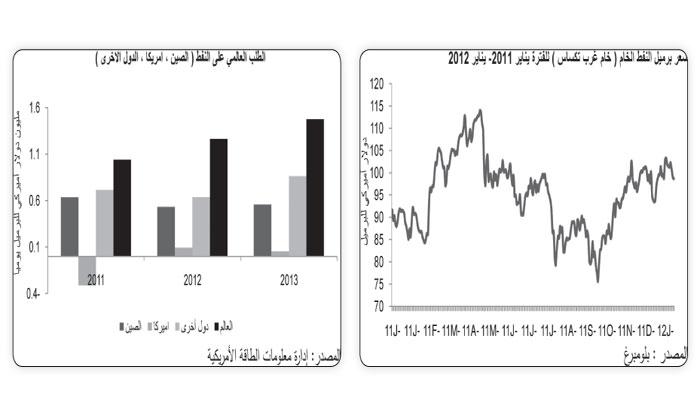 توقع تقرير أعدته شركة «بيتك للأبحاث»، التابعة لمجموعة بيت التمويل الكويتي «بيتك»، نمو الطلب على النفط في 2012 بنسبة تتراوح بين %1.2 و%1.4 على أساس سنوي. ومن المتوقع ان ينمو استهلاك العالم من النفط بمعدل يتراوح بين 1.0 و1.1 مليون برميل يوميا وصولا الى ما بين 88.9 و89.4 مليون برميل يوميا، ويأتي من الطلب القوي في الأسواق الناشئة مثل الصين والهند وروسيا والبرازيل والمكسيك وأجزاء أخرى من أمريكا الجنوبية وآسيا وأفريقيا، التي لا تزال على تحفز وتدعم الطلب على النفط.