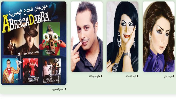 وأعلنت اللجنة المنظمة للمهرجان عن جدول حفلات «ليالي فبراير» الغنائية التي ستكون 6 ليال ساهرة يشارك فيها كبار المطربين العرب، اعتبارا من ليلة التاسع من فبراير افتتاح الحفلات الساهرة ويحييها عبد القادر الهدهود، ومنى امرشا، وفرقة ميامي، وتجمع الليلة التي تليها في العاشر من فبراير النجوم منصور زايد، وشيرين عبد الوهاب، وحسين الجسمي، أما السادس عشر من فبراير ستشهد لقاء ايمن زبيب، ومساعد البلوشي، وأسماء المنور، ورابح صقر، وفي السابع عشر، لقاء اخر يجمع كارول سماحة، ونبيل شعيل، ونوال الكويتية، والليلة قبل الاخيرة من الحفلات الغنائية ستكون يوم ثلاثة وعشرين من الشهر الجاري ويحييها عادل محمود، ومشاعل، وصلاح الزدجالي، وفهد الكبيسي، اما الليلة الاخيرة مسك الختام في المهرجان وستكون يوم الرابع والعشرين من فبراير وتجمع الفنانة اللبنانية ديانا حداد، وعبادي الجوهر، وعبدالله الرويشد وذلك بالتعاون مع شركة «روتانا» في التنسيق مع الفنانين والنقل المباشر للحفلات.
