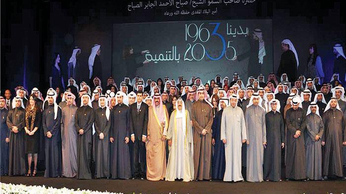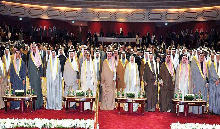 سمو الأمير محيياً مستقبليه بحضور سمو ولي العهد والشيخ جابر العبدالله والشيخ مشعل الأحمد