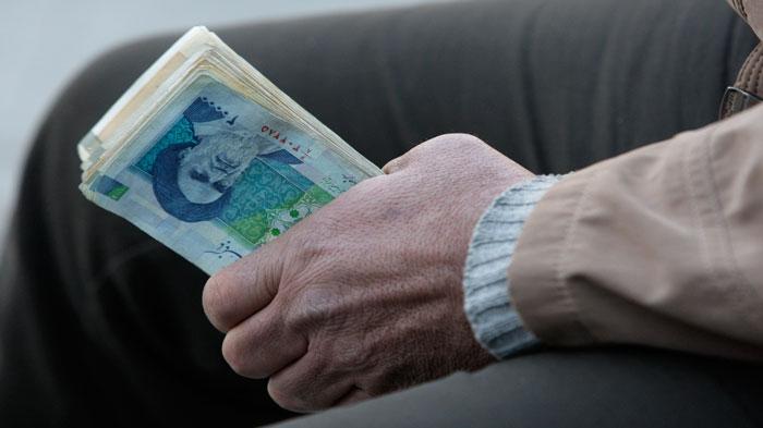 إيراني يحمل بيده مبلغاً من المال بانتظار صرفه في أحد البنوك بطهران (ا ب)