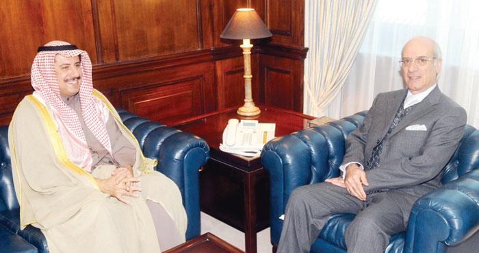 الشيخ عزام الصباح أثناء لقائه الوزير البحريني محمد المطوع