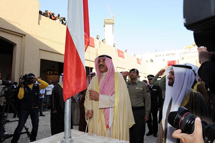 فتحت رعاية سامية من سمو مجلس الوزراء الشيخ جابر المبارك الحمد الصباح.. حفظه الله، نحتفل اليوم معكم حكومة وشعبا برفع علم الكويت ليرفرف خفاقا في سمائها الحرة الأبية، معلنا بدء احتفالاتنا الذكرى السادسة لتولي حضرة صاحب السمو الأمير الشيخ صباح الأحمد الجابر الصباح، مقاليد الحكم في دولة الكويت.