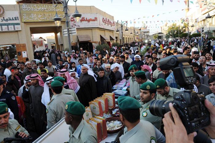 بعد أن رفع صاحب السمو المفدى أمير البلاد الشيخ صباح الأحمد الجابر الصباح علم الكويت صباح أمس ايذانا ببدء الاحتفالات ورفع الاعلام بمناسبة ذكرى السنة السادسة على توليه الحكم، شهدت ساحة «كشك» مبارك في سوق المباركية احتفالا بهذه المناسبة بحضور وزير الخارجية الشيخ صباح الخالد ووزير الإعلام الشيخ حمد الجابر الصباح ووزير البلدية فاضل صفر، وقد تم رفع علم الكويت في ساحة «كشك» مبارك وسط حشد كبير من المواطنين، وتلت ذلك جولة داخل «الكشك»، وبعدها لعب العرضة بالسيوف..