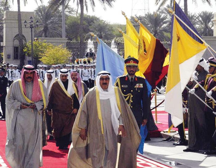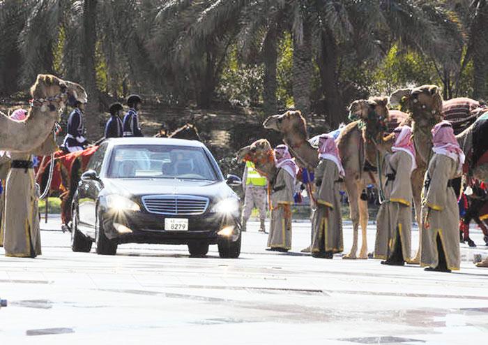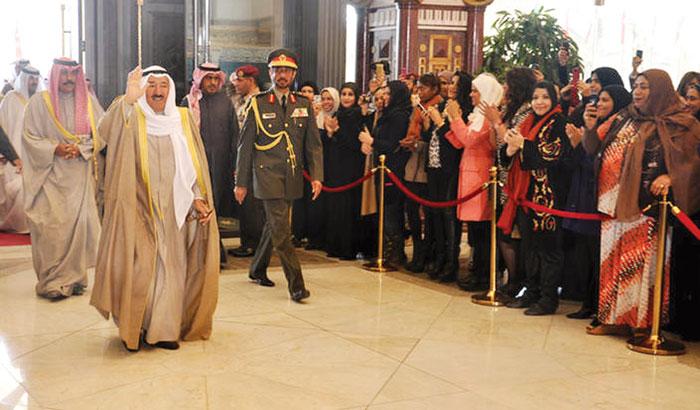 سمو أمير البلاد محيياً مستقبليه أثناء وصوله إلى مقر الاحتفال