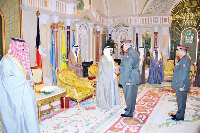 سموه مصافحاً رئيس الأركان بحضور سمو ولي العهد