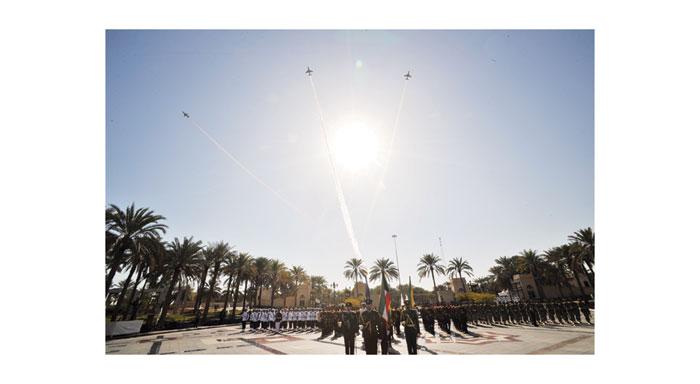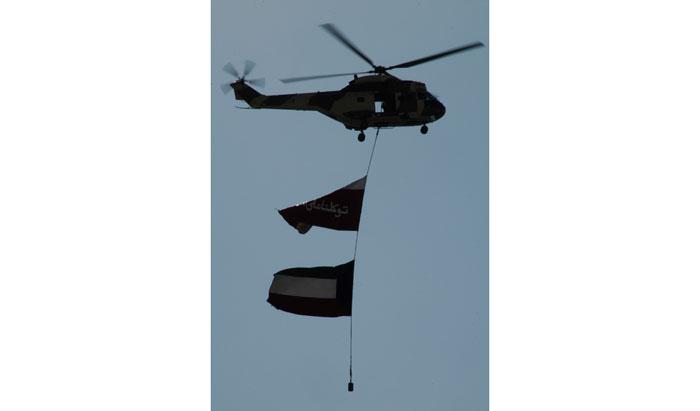 عرض بالطيران وفي الاطار مروحية تحمل علم الكويت