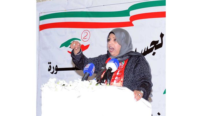 وخاطبت مرشح الدائرة الثانية النائب السابق علي الراشد «خلاص يا بوفيصل احنا فهمنا اللعبة» وذلك في اشارة الى اسلوب تعامل النواب مع القضايا في مجلس الامة، وإرغام الوزراء على التجاوب مع مطالبهم.