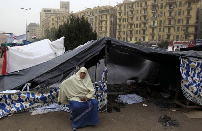 سيدة تعتصم في ميدان التحرير للمطالبة برحيل المجلس العسكري (أ.ف.ب)