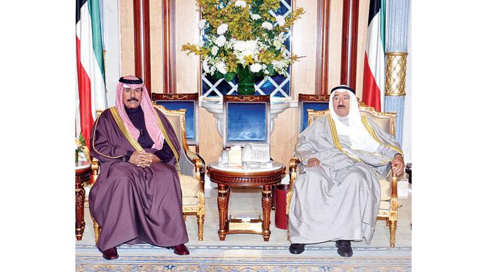 استقبل حضرة صاحب السمو امير البلاد الشيخ صباح الاحمد الجابر الصباح بقصر بيان صباح امس سمو ولي العهد الشيخ نواف الاحمد الجابر الصباح.