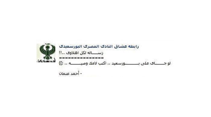«بورسعيدي» حذر من واقعة الاستاد قبل وقوعها بـ 12 ساعة