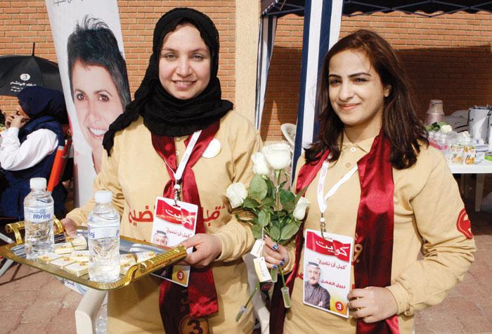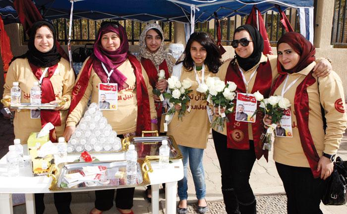 - كان لافتاً خيمة المرشح نبيل الفضل زرقاء اللون ويقوم مناصروه بتوزيع الورد والشوكولا على الناخبات.