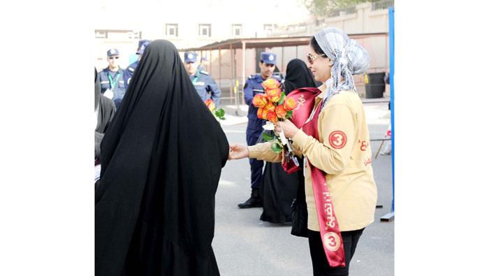 - في بادرة جميلة من مؤيدي المرشح نبيل الفضل قاموا بتوزيع الورود على الناخبات بالمنطقة.