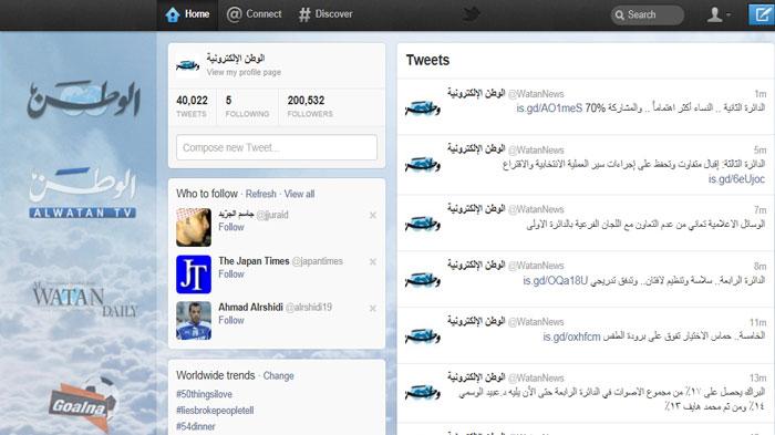 «الوطن الالكترونية» تكسر حاجز الـ 200 ألف متابع على «تويتر»