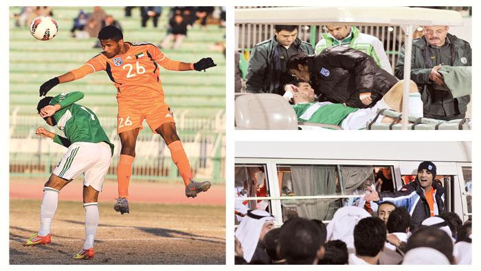 وخسر العربي جهود محترفه النجمي بعد اصابته نتيجة مشاركة يوسف ناصر معه في الشوط الثاني.