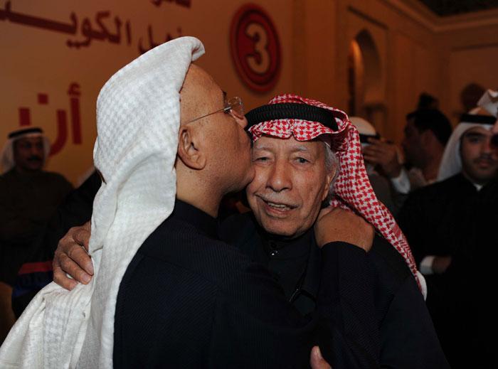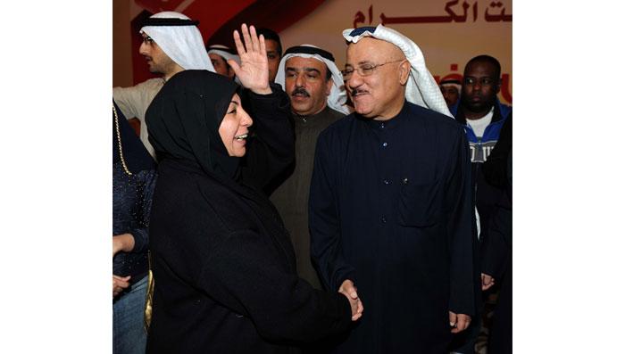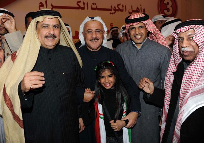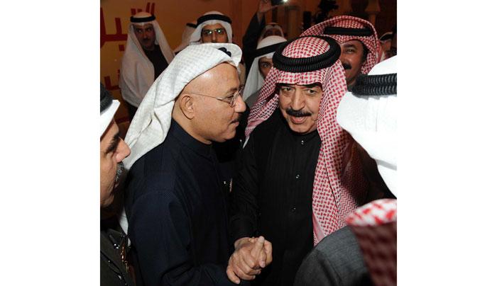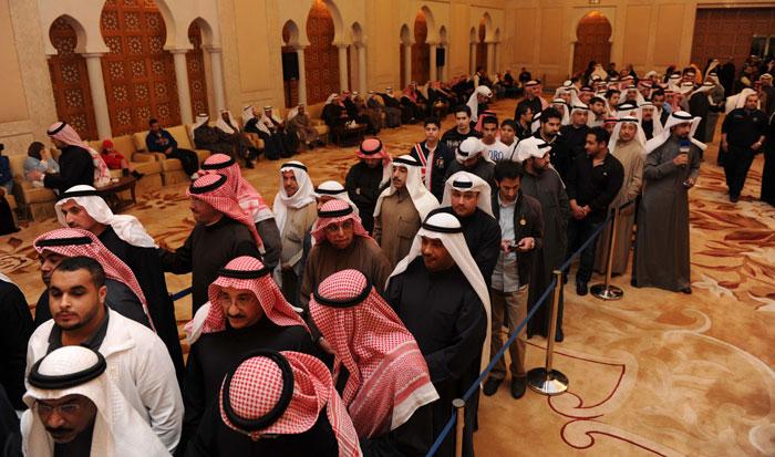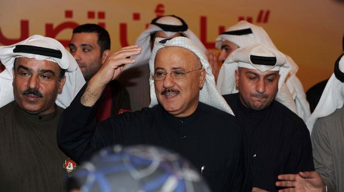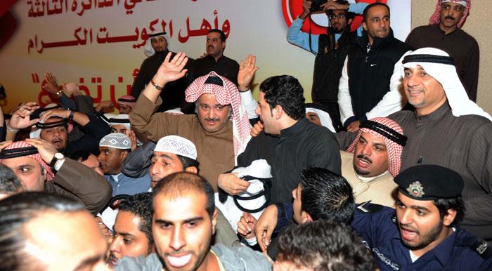 النائب محمد الجويهل محاطا بالحضور ورجال الأمن لدى دخوله لتهنئة الفضل