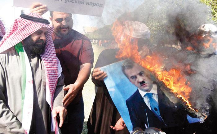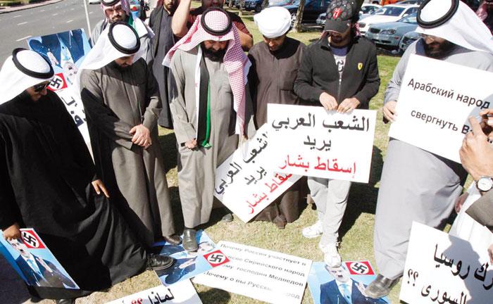 المتجمهرون حرقوا صورة الرئيس الروسي بحضور النائب د.وليد الطبطبائي