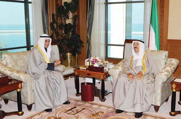 استقبل حضرة صاحب السمو أمير البلاد الشيخ صباح الاحمد الجابر الصباح بقصر السيف صباح امس على التوالي رئيس مجلس الامة الاسبق أحمد عبدالعزيز السعدون ورئيس مجلس الامة السابق جاسم محمد الخرافي وسمو الشيخ ناصر المحمد الاحمد الصباح رئيس مجلس الوزراء السابق وذلك في اطار المشاورات التقليدية الجارية لتشكيل الحكومة الجديدة.