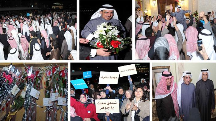 واضاف جوهر خلال استقباله مؤيديه: ان هذه الجموع التي جاءت من مختلف مناطق الكويت جاءت لتثبت معدنها الأصيل ووفاءها، مشيرا الى أنني استطعت من خلال عملي كنائب بمجلس الأمة ان أسجل معنى الوحدة الوطنية.